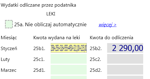 > np. przy wpisywaniu w PIT/O kwot za leki jeśli jest faktur np. 6, to kwoty
