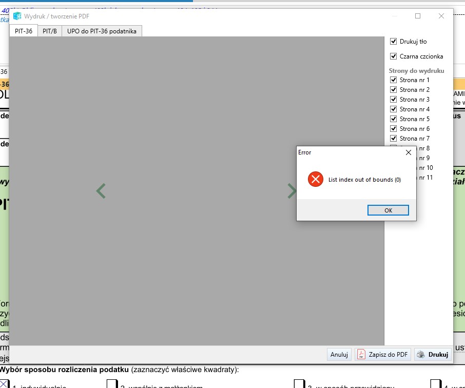 U mnie po aktualizacji przy zapisywaniu do pdf wyskakuje info: List index out of bounds. Nie mogę nawet pitu wydrukować.