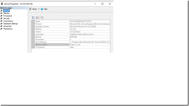 Pity IPS do prawidłowego działania wymagają ustawienia Collation = Polish_CI_AS