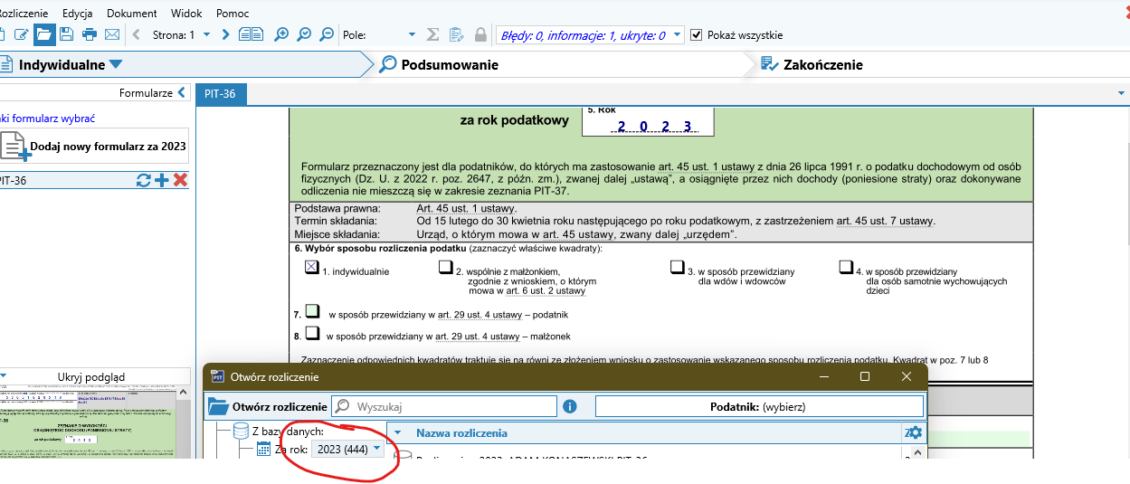 > nadal nie działa wybór roku w "środku otwartej deklaracji":