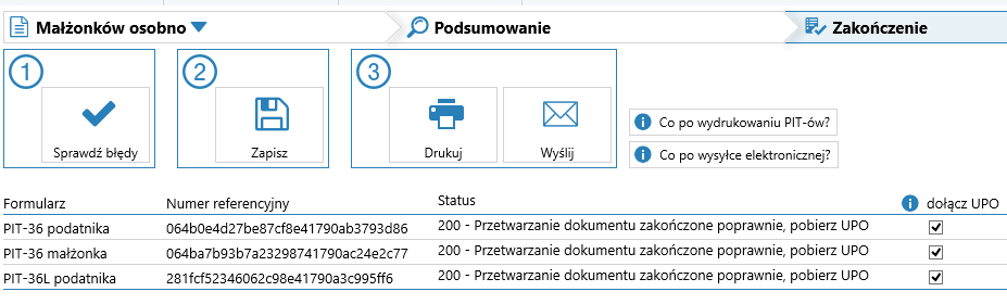 Po wysłaniu pit-a ze statusem 200 proszę przejść na zakładkę "Zakończenie" i zaznaczyć przełącznik "dołącz UPO".