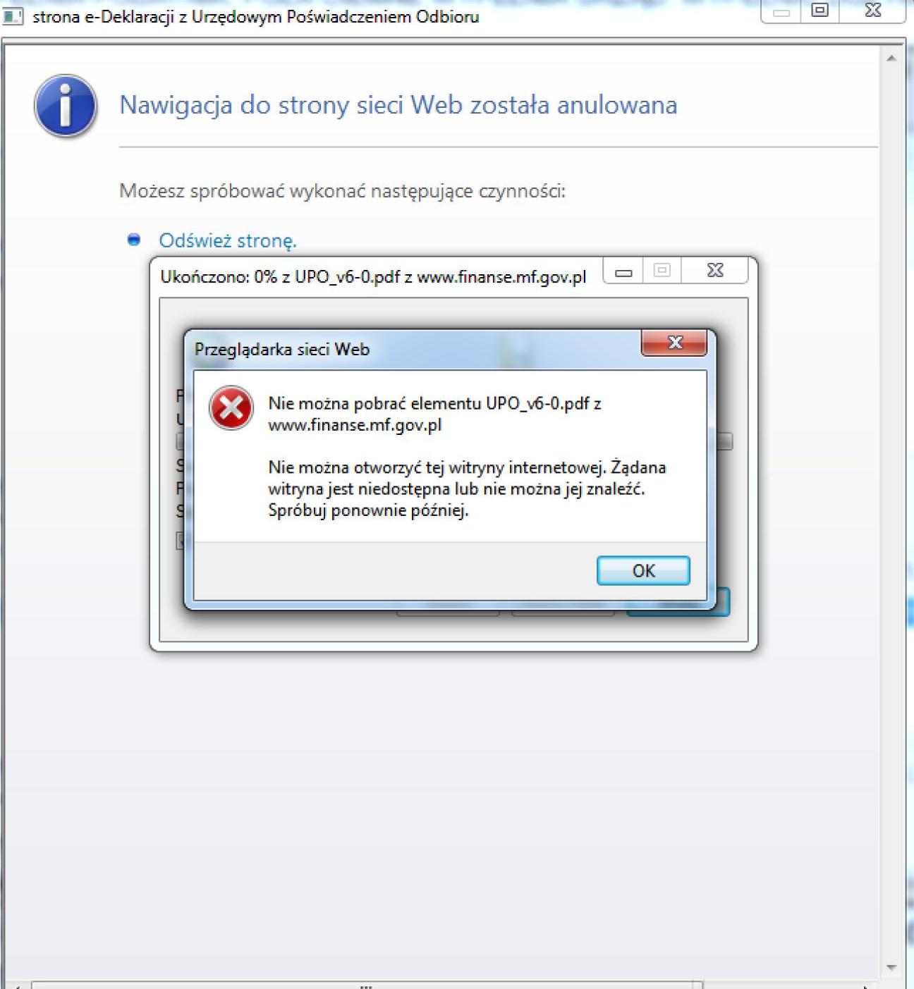 Niestety otrzymuję informację jak na załączonym print screenie.