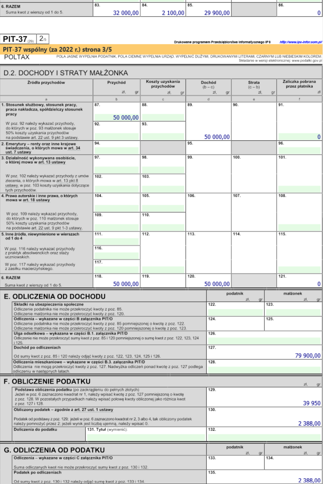 No to wrzucam kolejny załącznik - małżeństwo gdzie jedna osoba ma dochód poniżej 30k, druga 50k. Podatek do zapłaty (bez IKZE) obliczony na 2388.